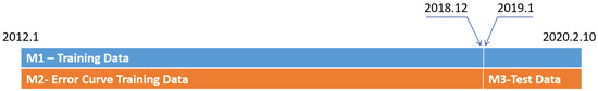 We have divided the data into two parts. Figure 2 shows the graphical representation of the data splitting technique. It is the graphic explanation of how we have split the training and testing data between three models. The first part is for training M1 and Error curve training using M2, and the second split is used for M3. The first split consists of data from January 2012 to December 2018. The second split consists of data from January 2019 to February 2020.