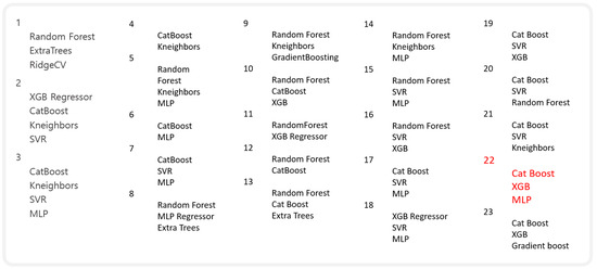 Model number 22, comprised of Catboost, Xgboost and MLP, performs better than other combinations. Hence, we chose this combination for further simulations.