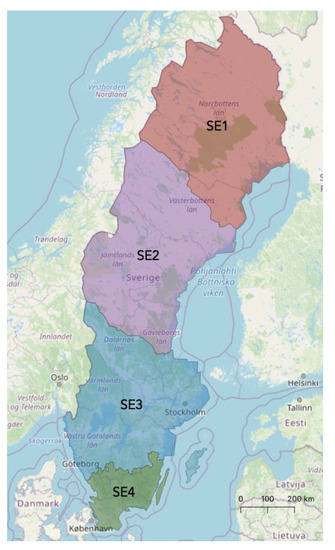 - Svenska Kraftnät, Varför Delades Sverige upp i Fyra Elområden? [Why was Sweden Divided into Four Electricity Pricing Areas?]. 2020. Available online: https://www.svk.se/utveckling-av-kraftsystemet/systemansvar–elmarknad/elomradesoversyn/fragor-och-svar-om-elomradesoversyn/varfor-delades-sverige-in-i-fyra-elomraden-2011/ (accessed on 15 May 2021).