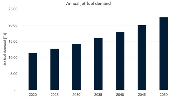 Estimation of annual jet fuel demand in Sweden (2020–2050).