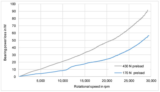 - Jiang et al. [24] conducted a study, which focuses on machine dynamics of a FESS rotor and include measurements of rolling bearing system power losses. A comparison with the results of the work at hand is given in Section 4.1.