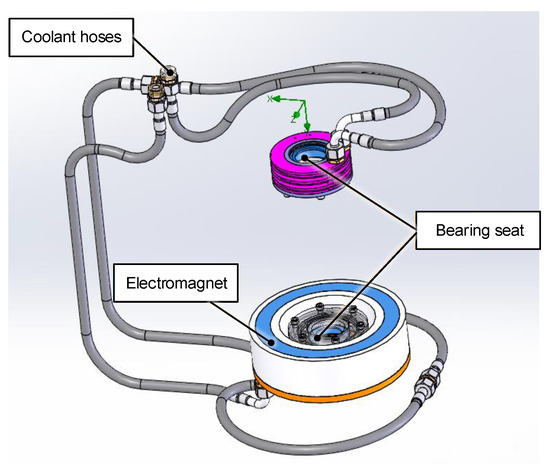 The developed design guidelines are applied to the 5 kWh, 100 kW FESS use case, including testing of the final bearing system installed in a prototype. It must be mentioned that the presented results are related to the bearing system for the CFRP rotor (or “energy module” according to Figure 2), and not the electric machine/motor-generator. However, the design methodology for the development of a motor generator bearing system operating in a vacuum is the same, with special emphasis on the thermal management presented in Section 4.