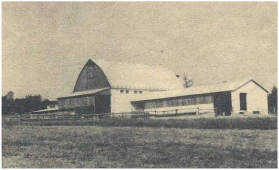 Figure 1. A stable for young cattle in the village of Libějovice (1958) [32].