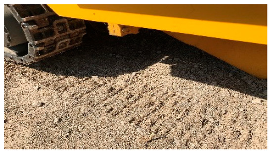 In order to verify the rectification kinematic and dynamic models of the roadheader on an inclined roadway [2], the EBZ-55 roadheader was taken as an experimental example. Experiments regarding uniform motion in a straight line on horizontal ground (Figure 5) and turning motion on a slope (Figure 6) were carried out. The uniform motion in a straight line experiment (Figure 5) was conducted on an experimental roadway which was 4 m wide and 25 m long. The experimental ground was cement ground with a rectangular roadway, which was not suitable for large angle turning, but was suitable for a uniform linear motion test. The turning motion on a slope experiment (Figure 6) was conducted on sandy soil with an inclination angle of 3.475° from the floor. During the experiment, the roadheader moved at the speed of 0.05 m/s and also turned at about 0.05 m/s. The experimental site in Figure 6 was built with sandy soil and had a certain inclination angle, which could meet the various turning movements of the roadheader.