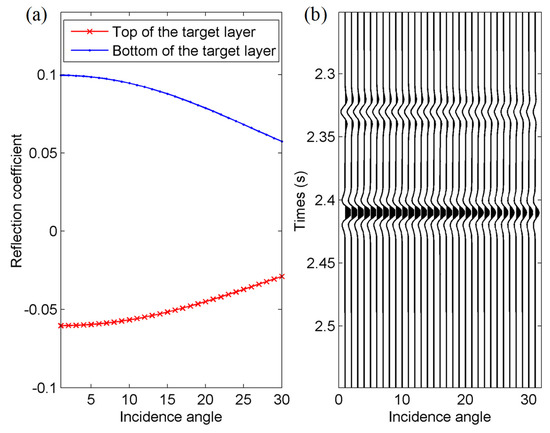 (a) AVO curves and (b) synthetic seismic records of the target layer.