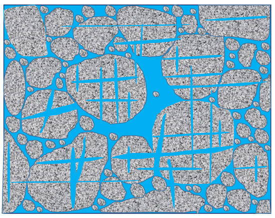 Figure 4 shows an idealization of the tight sandstone of the Xujiahe Formation, which is characterized by a complex pore structure and microcrack network. The total porosity is the sum of intergranular and microcrack porosity.