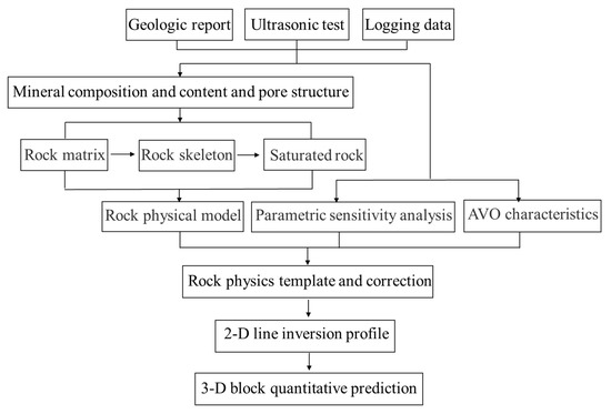 The flowchart for the prediction of the reservoir properties is given in Figure 5. The microcrack porosity is estimated by using the quantitative relation between the elastic attributes and reservoir properties, based on a rock-physics model and aided by geological, log data, and ultrasonic data.