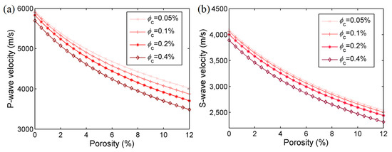 Effect of the total and microcrack porosities on the P-wave (a) and S-wave (b) velocities.