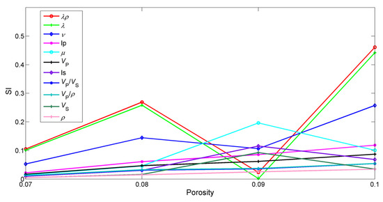 Sensitivity indices varying with the total porosity, based on data from Well P.