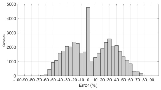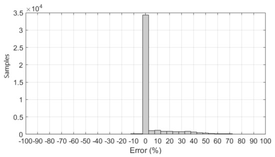 In contrast to Figure 7, Figure 10 shows that most of the error is around 0%, accounting for an overall deficit of about 8%. This clearly shows the impact of the storage time in the performance of the BESS as an SFC provider.
