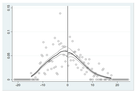 48. McCrary, J. Manipulation of the running variable in the regression discontinuity design: A density test. J. Econ. 2008, 142, 698–714. [Google Scholar] [CrossRef] [Green Version]