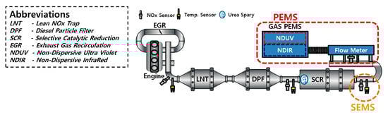 28. Jeong, J.W.; Sim, I.; Kim, S.L.; Yu, Y.S.; Chon, M.S.; Cha, J. A Correlation Analysis of NOx Emissions for Driving Condition between PEMS and SEMS Devices. Trans. Korean Soc. Automot. Eng. 2021, 29, 187–196. [Google Scholar] [CrossRef]