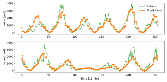 Figure 8 provides an example of results reported by asking recurrently the inference of the trained WaveNet (20, 1, 1) on a test data window with consecutive values of solar irradiance.