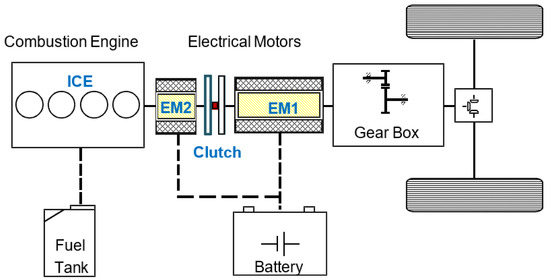 Regarding the control strategy for HEV, the authors of [9] review different rule-based controls and optimization-based controls in order to improve the fuel economy for HEV. Other research on control strategy for clutch engagement during the switching mode of PHEV is presented in [10]. The authors of [11] present mode transition control for single-shaft PHEV using a model predictive control approach. The authors of [12] introduce multiphase mixed-integer nonlinear optimal control of HEV. The economic aspect of using different PHEVs in urban conditions is also reviewed in [13]. Finally, new optimized adaptive control for mode transition is presented in [14], where a mathematical model for clutch friction is developed for a PHEV during the mode transition.