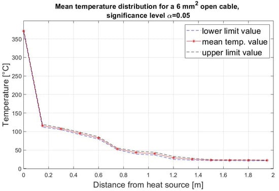 A value that is significant from the model computation result accuracy perspective is the introduction of ambient temperature value Toto. Ambient temperature is introduced as a mean value for the entire cable length. Assuming that a mean temperature along the cable length is not a breach since the process of calculating temperature inside buildings usually involves adopting a certain set of temperature values, most are usually in the range of 20–25 °C [].