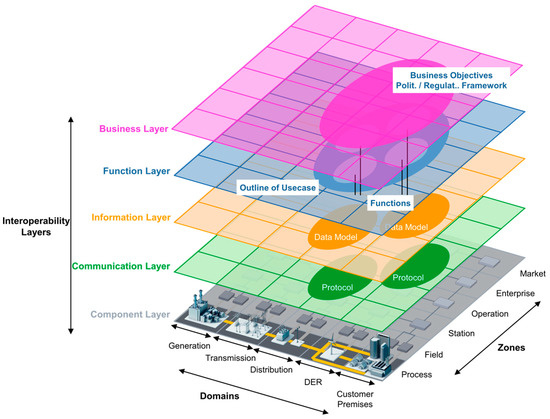 - CEN-CENELEC-ETSI. Smart Grid Coordination Group Smart Grid Reference Architecture; European Commission: Luxembourg, 2012. [Google Scholar]