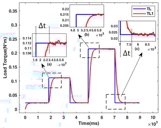 Actual observation results of load torque: (a–c) convergence time and torque fluctuation.