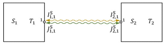 Reservoirs are subsystems that contain extensities and energy. As schematically shown in Figure 1, they are usually illustrated as rectangles. Due to the requirement of internal thermodynamic equilibrium, in a reservoir, the intensities have equal values at all its contact points r. Therefore, the contact point’s identifier can be omitted: .