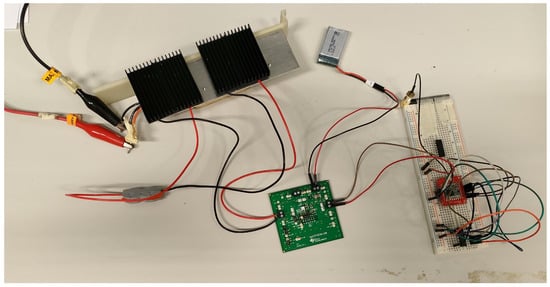 By further decreasing the temperature gradient, the TEG produces smaller voltages which can be critical for the BMS since it can work properly only if the harvesting source can supply a minimum OC voltage of 130 mV. A single TEG is not able to develop such a voltage with low temperature gradients, and this causes the BMS to remain in its “cold start” stage. To overcome this problem, two TEGs of the same model were connected in series, and the MPPT was changed to 80% of the full-scale value. This last modification causes a decrease in the power supplied by the TEG but an increase in terms of provided voltage.