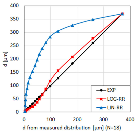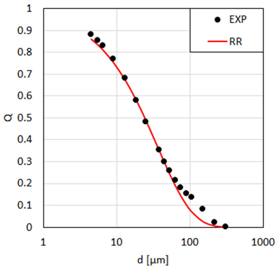 In the presently applied Lagrangian formulation of the particle phase, the measured particle size distribution is applied exactly. The diameter values given in the experimentally provided distribution [62] define the borders between the individual size classes. The representative particle diameter in each size class is assumed to be given by the arithmetic average of the bordering sieve diameters (dS). The percentage volume contained in each size class is given by the difference in the amounts passing through the neighbouring sieve sizes. Assuming the minimum particle size to be 1 μm, the resulting particle size distribution, which has 18 particle size classes (N = 18), is provided in Table 6, where the diameters (d) of the size classes and the fractions of the particle mass within each size class (Δm) are presented.
