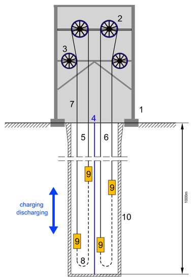 - Morstyn, T.; Chilcott, M.; McCulloch, M.D. Gravity energy storage with suspended weights for abandoned mine shafts. Appl. Energy 2019, 239, 201–206. [Google Scholar] [CrossRef]