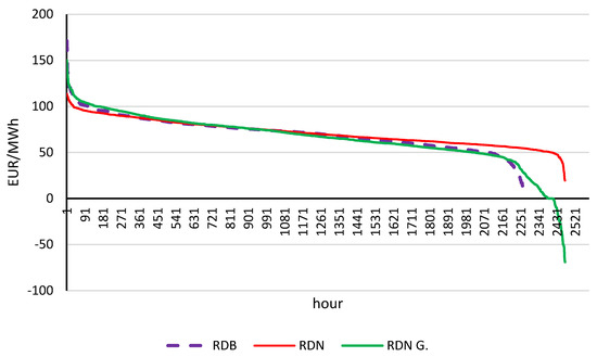 Energy prices in Poland in the analysed period were practically never lower than 40 EUR/MWh (with minor exceptions), while in Germany prices were negative on several occasions. Detailed ordered price values are presented in Figure 5.