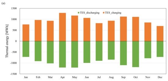 Operating profile of TES: (a) monthly operation of TES, (b) hourly inner operating temperature of TES.