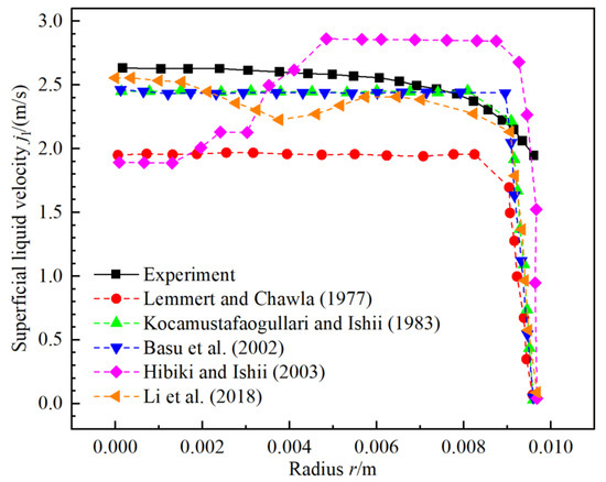 As shown in Table 4, the expression of the bubble departure frequency f was proposed with multiple parameters [42]. A formula for f by considering the effects of buoyancy, drag and thermodynamics was given [43]. Then, f was derived when the heat flux is low and the bubbles do not noticeably influence with each other [44] in the subcooled boiling. Furthermore, the expression of f was presented in combination with the study of bubble number density in the subcooled boiling [45]. In addition, f was obtained based on the interphase heat flux q and the latent heat of the phase change hlg [46]. It was already validated with many experiment data sets. In this paper, the model of the bubble departure frequency of Brooks and Hibiki [46] is carried out for the calculation.