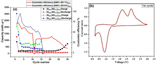 - Evers, S.; Nazar, L.F. Graphene-enveloped sulfur in a one pot reaction: A cathode with good coulombic efficiency and high practical sulfur content. Chem. Commun. 2012, 48, 1233–1235. [Google Scholar] [CrossRef] [PubMed]