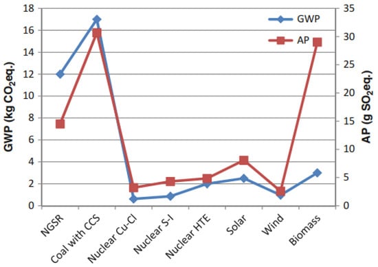 - Yildiz, B.; Kazimi, M.S. Efficiency of hydrogen production systems using alternative nuclear energy technologies. Int. J. Hydrogen Energy 2006, 31, 77–92. [Google Scholar] [CrossRef]