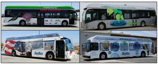 - Hua, T.; Ahluwalia, R.; Eudy, L.; Singer, G.; Jermer, B.; Asselin-Miller, N.; Wessel, S.; Patterson, T.; Marcinkoski, J. Status of hydrogen fuel cell electric buses worldwide. J. Power Sources 2014, 269, 975–993. [Google Scholar] [CrossRef] [Green Version]