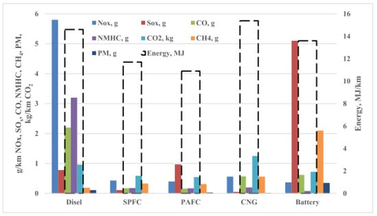 - Granovskii, M.; Dincer, I.; Rosen, M.A. Life cycle assessment of hydrogen fuel cell and gasoline vehicles. Int. J. Hydrogen Energy 2006, 31, 337–352. [Google Scholar] [CrossRef]