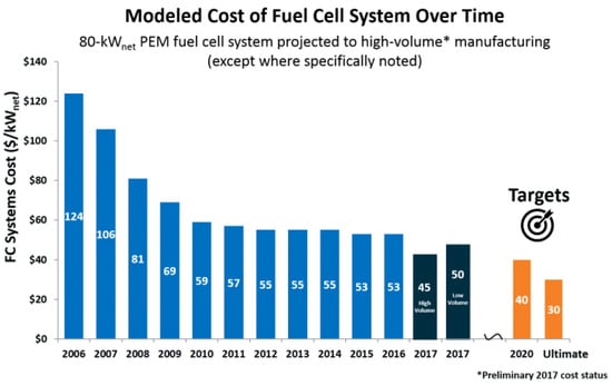 - Fact of the Month April 2018: Fuel Cell Cost Decreased by 60% Since 2006. Available online: https://www.energy.gov/eere/fuelcells/fact-month-april-2018-fuel-cell-cost-decreased-60-2006 (accessed on 2 November 2021).