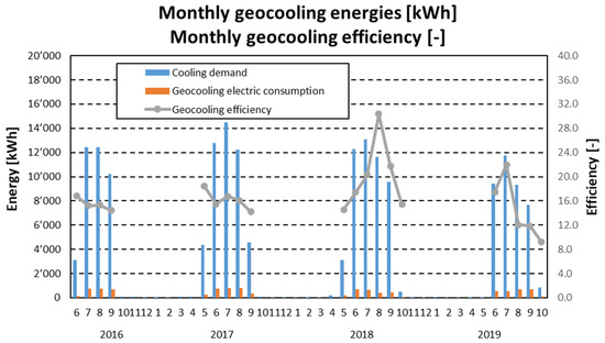 - Belliardi, M. Applied Analysis of Geocooling Technology for a Residential Building in Lugano, Final Report, Swiss Federal Office of Energy (SFOE), Energy Research and Cleantech. 2020. Available online: https://www.aramis.admin.ch/Default?DocumentID=66659 (accessed on 5 November 2021).