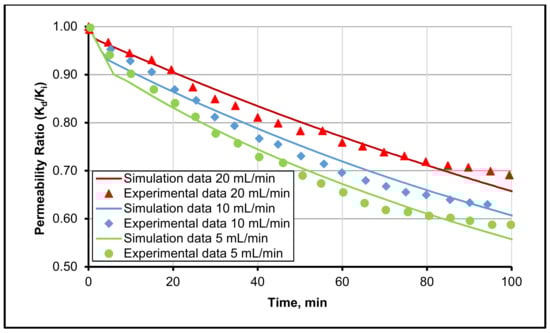 Figure 2 demonstrates that the decrease of formation permeability is caused by the scale precipitation. It is also evident that the ratio of altered permeability to initial permeability (