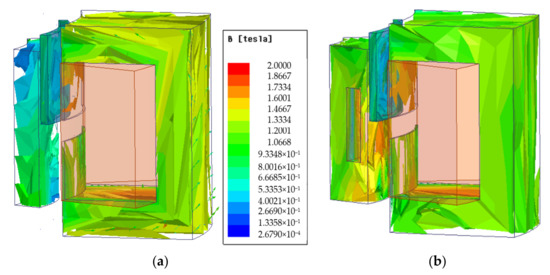 Loaded flux density distributions: (a) Conventional model 1; (b) Proposed model 2.