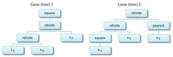 Typical 2-gene program evolved by MGGP with a maximum tree depth of 4.