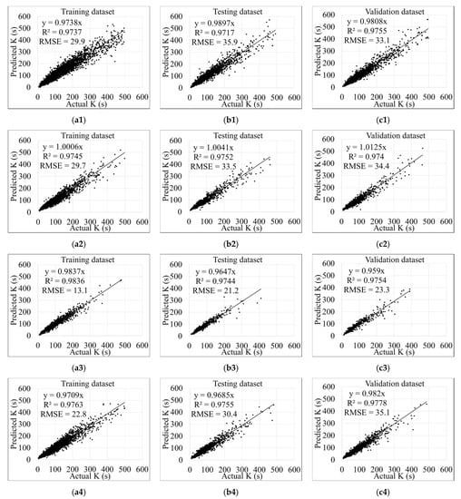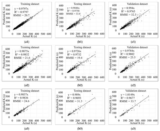 As mentioned previously, a recent simulation-based study [24] investigated the individual impact of multiple operating conditions (e.g., cruising speed and road gradient) on the K-factor (Figure 4). The study concluded that the K-factor varies significantly under various conditions. Thus, the K-factor should be a function of multiple factors. To achieve that, the following subsection explains the development of a series of predictive models to estimate the K-factor, considering the simultaneous impact of various factors.