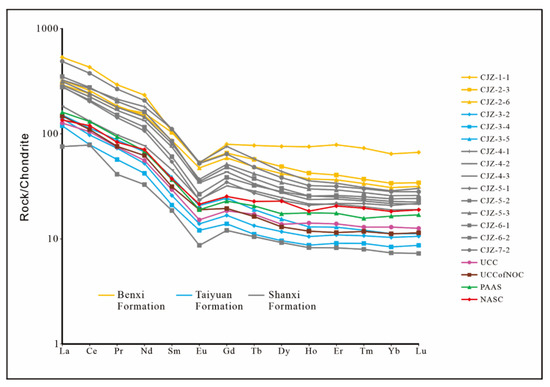 Rare earth element distribution for the Benxi−Shanxi formations at the Liulin section.