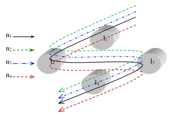 Consider the flow shop system defined by four production tasks, N = 4, and four machines, L = 4 (Figure 2). Job numbers are encoded in the DNA library (Table 2). Antibodies are generated by random gene recombination from the DNA library. As a result, only active antibodies are generated, in other words, each chromosome contains all genes from the DNA library. The generation of unfeasible solutions is prevented by the permutational representation of genes in the chromosome.