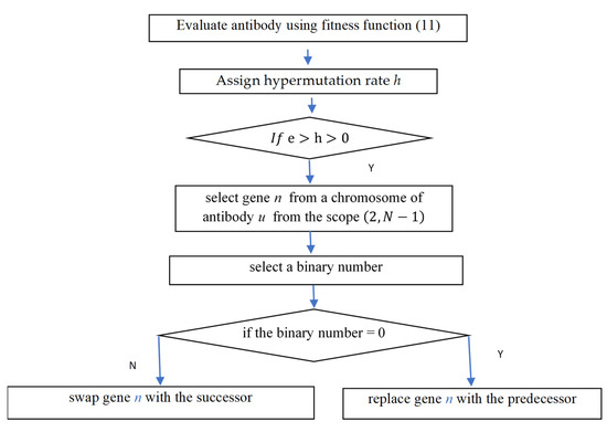 In the SM procedure (Figure 10) an operation (gene) is randomly selected and then replaced with the previous gene. Assuming that the antibody chromosome consists of the number of N genes, a gene is randomly selected from the range .