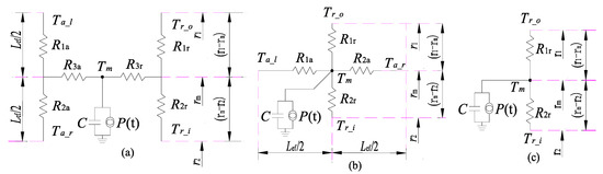The thermal network unit of “H” type includes radial and axial thermal resistance (R1r, R2r, R1a, R2a), which are given in Figure 2a and Table 1.