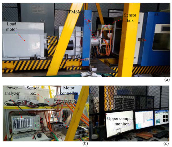 The temperature rise experiment platform including IPMSM manufacture is established to validate the above-mentioned method using a FLUKE infrared thermal imager and thermocouple PTC100. Load current and efficiency maps are obtained using the dynamometer platform. The load experiment shows that the transient LPTN of the IPMSM can accurately predict node temperature variation.
