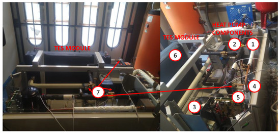 Some pictures of the installed heat pump with integrated TES module are shown in Figure 4.