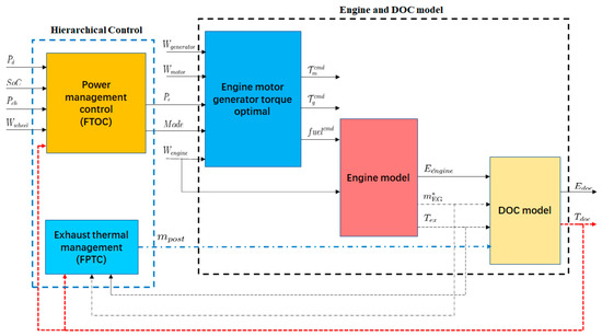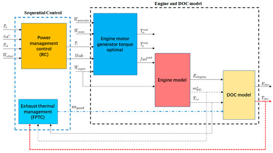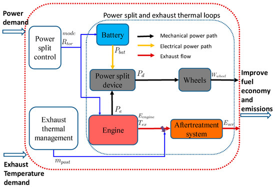 Zhao, J.; Hu, Y.; Xie, F.; Li, X.; Sun, Y.; Sun, H.; Gong, X. Modeling and Integrated Optimization of Power Split and Exhaust Thermal Management on Diesel Hybrid Electric Vehicles. Energies 2021, 14, 7505. https://doi.org/10.3390/en14227505