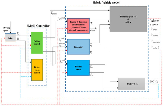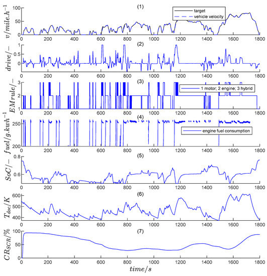 - Zhao, J.; Wang, J. Integrated Model Predictive Control of Hybrid Electric Vehicle Coupled with Aftertreatment Systems. IEEE Trans. Veh. Technol. 2016, 65, 1199–1211. [Google Scholar] [CrossRef]
