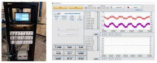 A dedicated program was prepared in the LabView environment to support gathering information from the described measuring modules. The program provides online visualization of fast- and slow-changing signals, FFT analysis, and data recording.