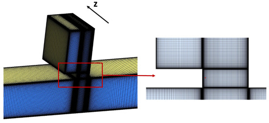 The three-dimensional mesh was generated by translating the 2D mesh and properly dividing it along the z direction. The applied three-dimensional mesh consists of 5.9 million nodes and is shown in Figure 6.