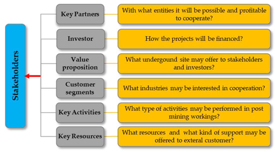 Based on 29 questionnaires which were filled up by representatives of R&D centers, underground labs, universities, and representatives of state mining authorities the ways of underground workings readaptation were described and analyzed. The whole process of choosing the type of reclamation need to be supported by the development of the business model, service development, identification of stakeholders, and finally an analysis of strengths and weaknesses (Figure 7).