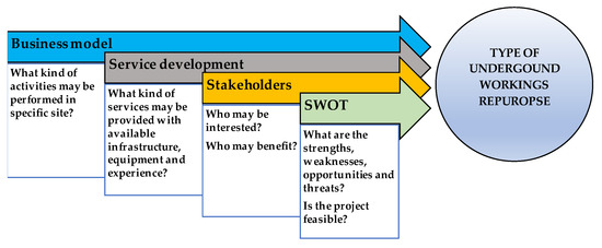 The possibility of effective underground space re-development is strongly dependent on the properly developed business model, quality of value proposition, method and effectiveness of service design, and the presence of stakeholders who are essential in the process of implementing and exploiting new ideas. The whole process of mining reclamation should be preceded by SWOT analyses which could highlight the most efficient way of further underground space development. All methods, surveys, and analyses have been performed within EU donated Baltic Sea Underground Innovation (BSUIN) and Empowering Underground Laboratories Network Usage (EUL) projects.
